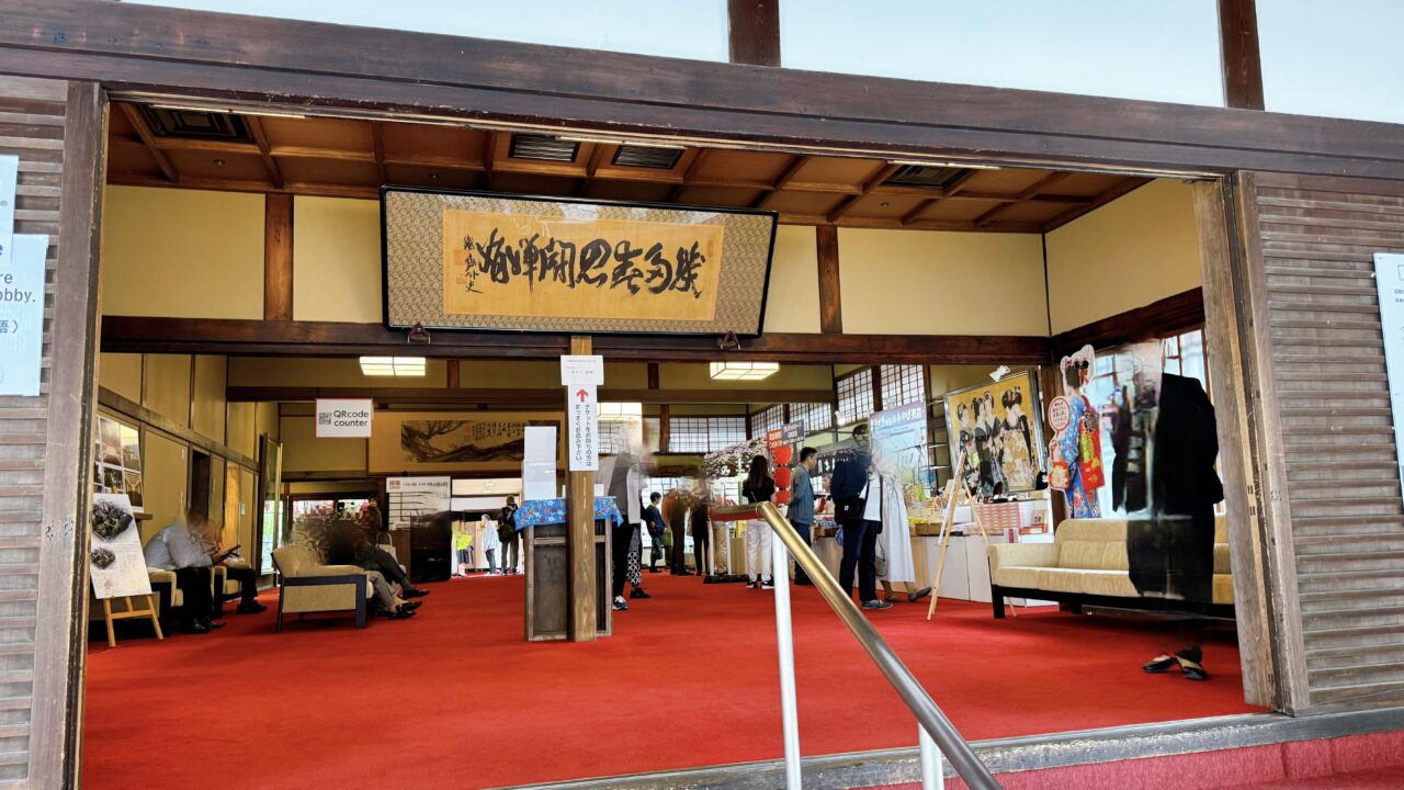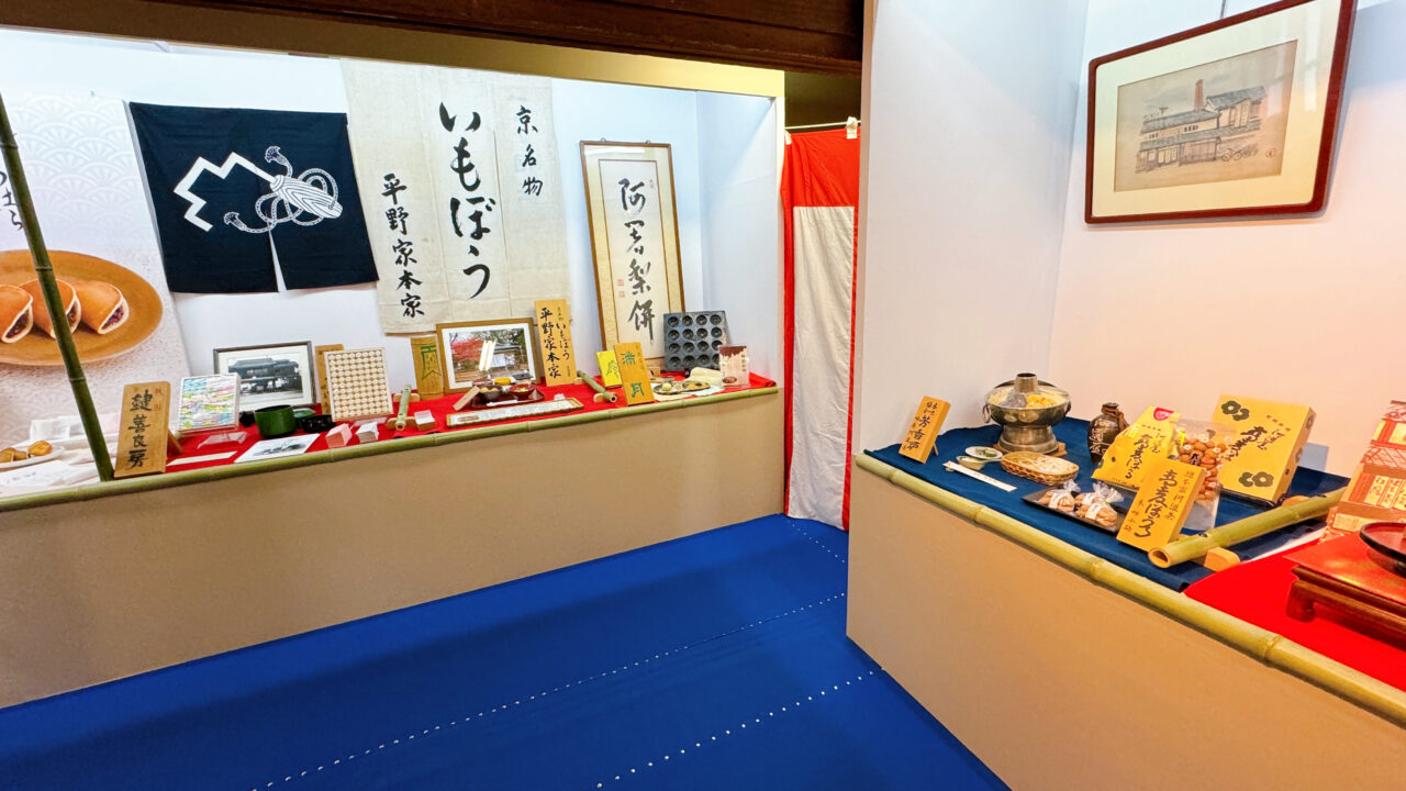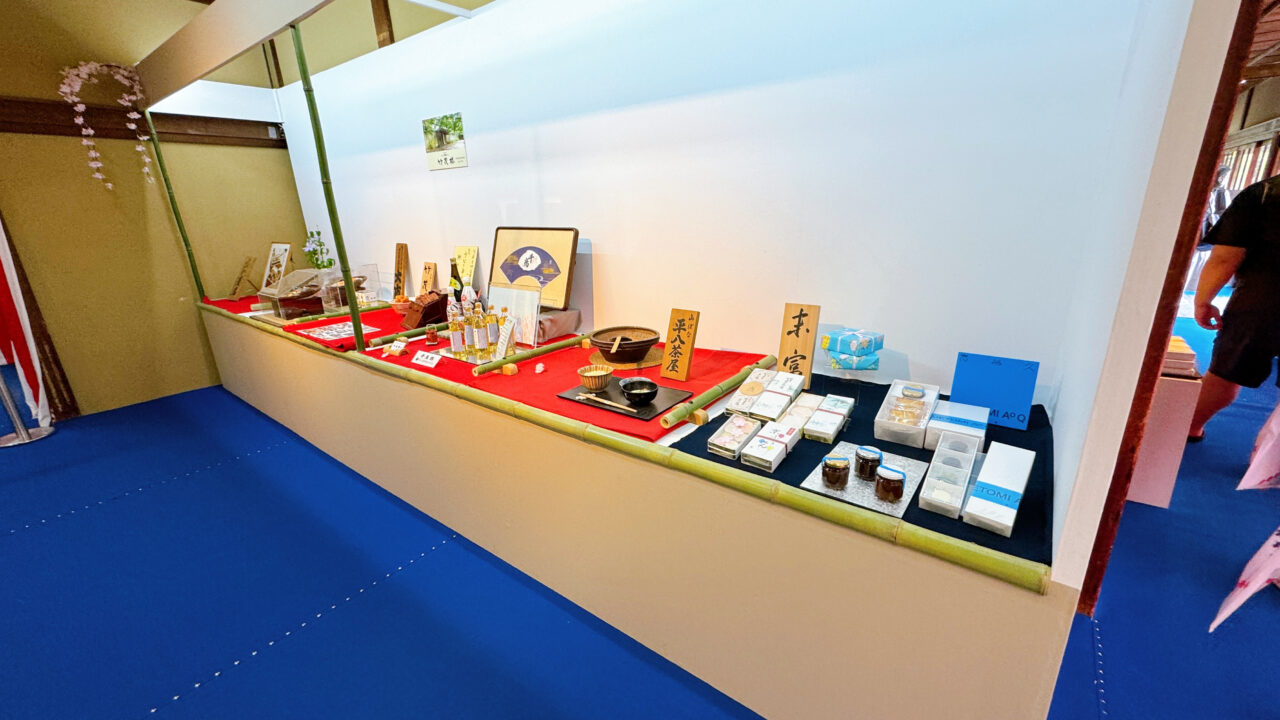会場は上画像の右側から入場し、最初にスポンサーの展示や都をどりの衣装など、さまざまな展示を見ることができました。