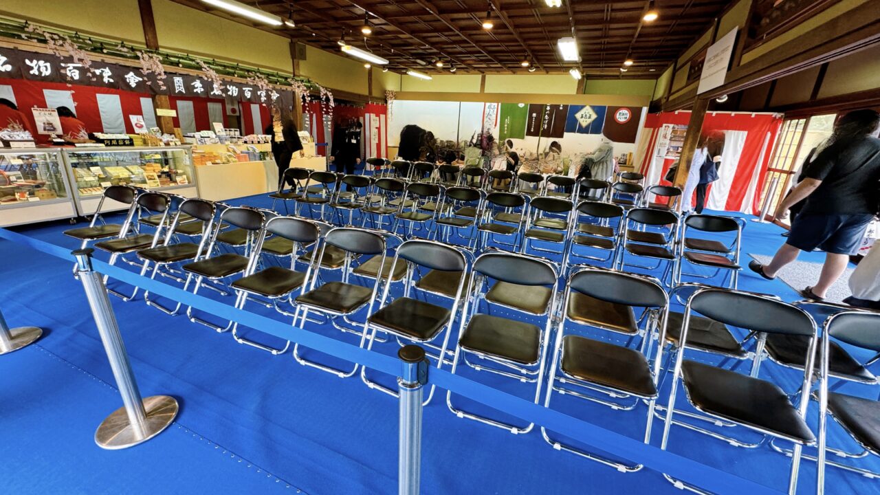 さらに会場内の廊下を進むと、椅子が用意された部屋に通されました。