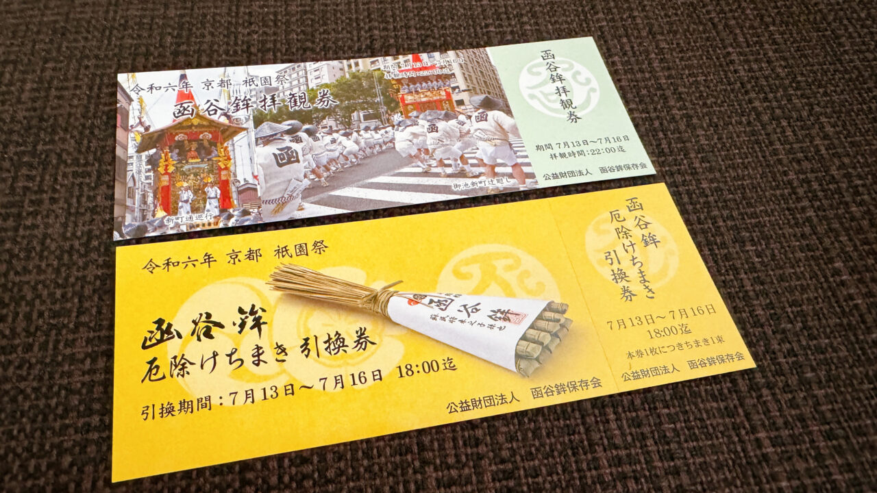 - 函谷鉾厄除けちまき引換券(18時まで)