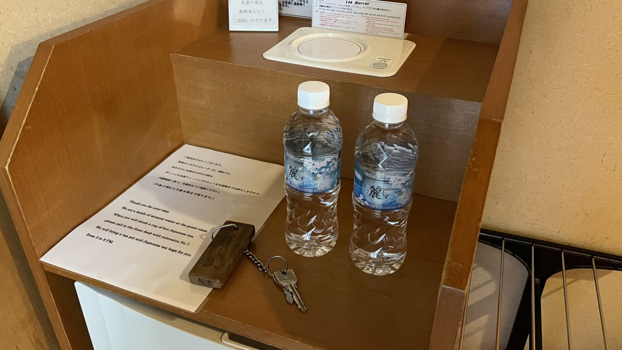 ペットボトルの水が2本 歯ブラシが置いてありました 画像を見ておわかり頂けたと思います シンプルなお部屋ですが とても快適空間ですよね