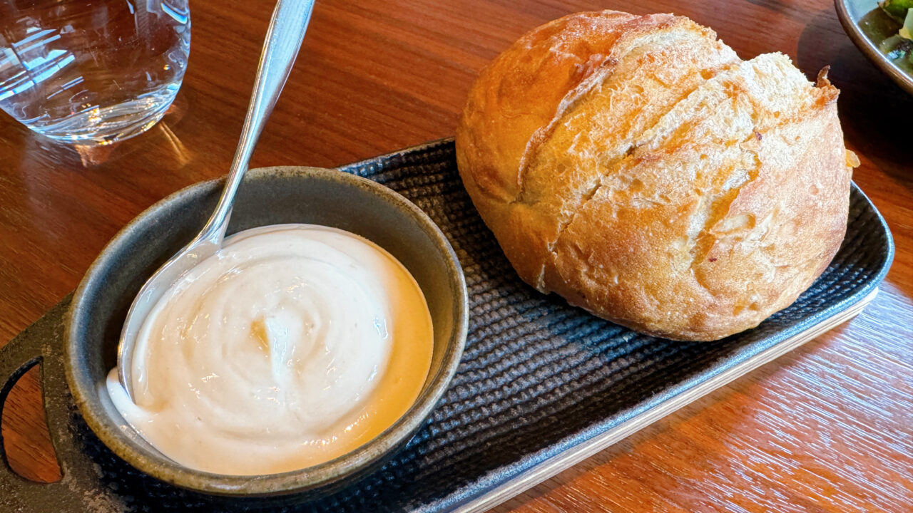 画像にはありませんが、「サーモンのグリル レモンとディルのクリームソース(コース)」と「季節のグリーンサラダ ジンジャードレッシング」もオーダーしています。
