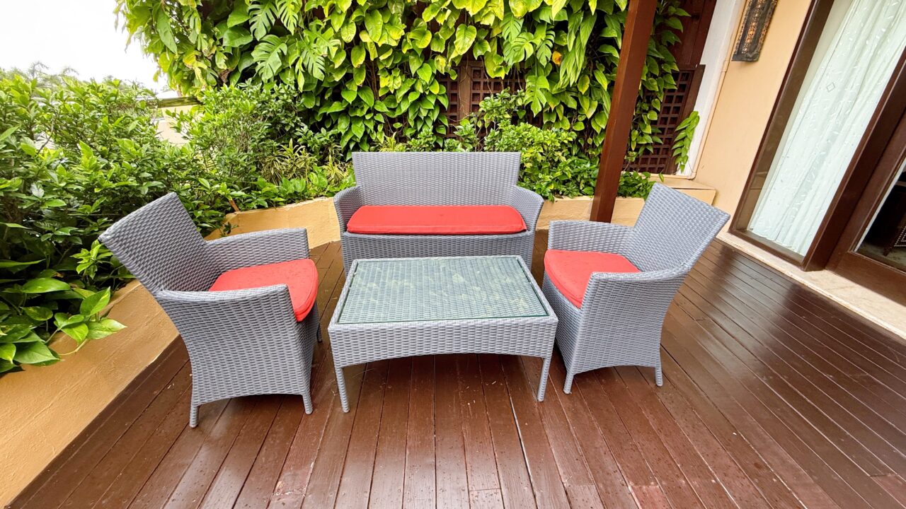 - バルコニーには様々な椅子があり、天気が良ければ外でくつろげる